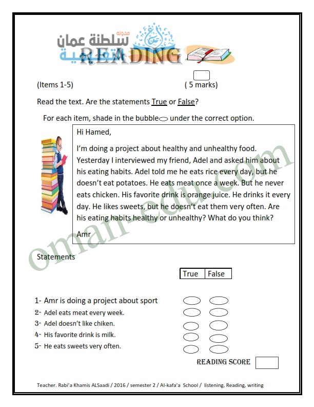 قطع فهم انجليزي مع الاسئلة