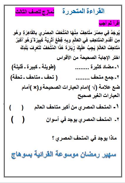 نماذج قراءة متحررة للصف الثالث والرابع 2017 اعداد استاذ سهير رمضان