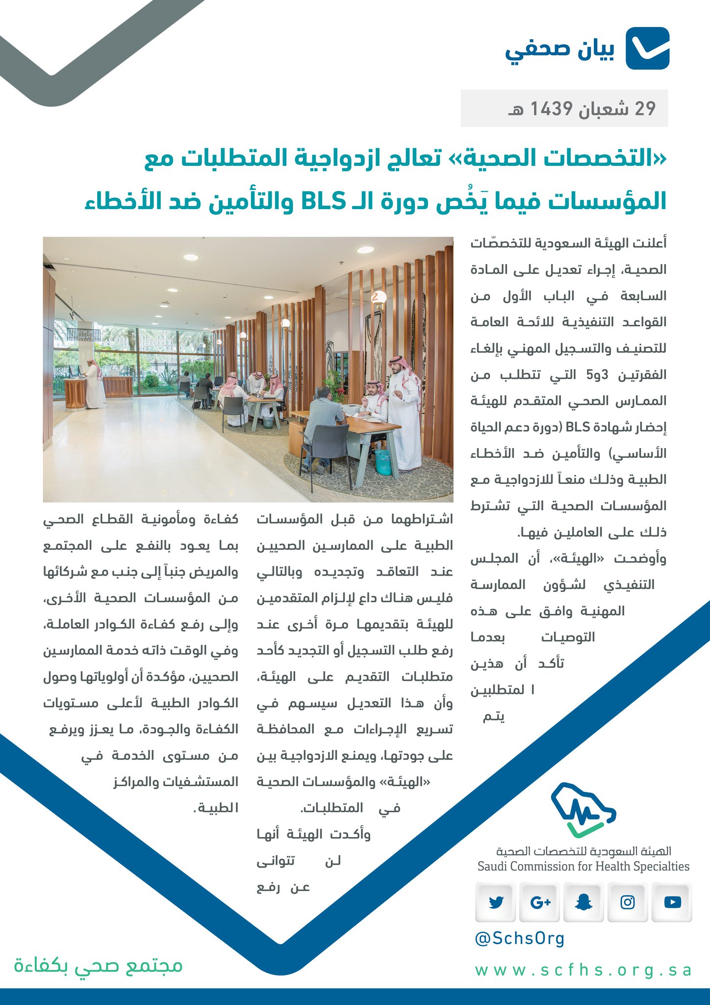 هيئة التخصصات الصحية On Twitter هيئة التخصصات الصحية بيان صحفي التخصصات الصحية تعالج ازدواجية المتطلبات مع المؤسسات فيما ي خ ص دورة الــ Bls والتأمين ضد الأخطاء Https T Co Dcychjlbiz Https T Co Y5zaw1exhe